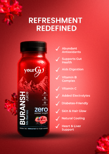 The timeless Buransh (Rhododendron arboreum) joins hands with a medley of mixed berries to create a bright, antioxidant-packed superdrink. Bursting with natural flavor, monk fruit sweetness, and nutrient-rich benefits, it supports heart health, fights free radicals, and keeps you feeling refreshed and energized. A lively fusion of Himalayan tradition and modern vitality—crafted to fuel your every day.